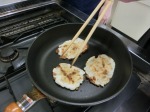↓アイディ料理制作中。左は鮫川特産の大豆で作った納豆入りクッキー。右は納豆せんべいです。