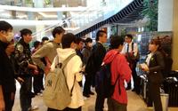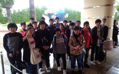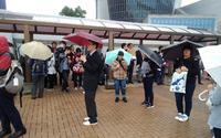 2019年10月24日 14時50分雨が激しくなってきたため、予定していた「地球」の前を諦め、屋根のあるところで集合写真を撮りました。