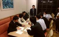 全体への注意を終え、部屋長会議が行われています。