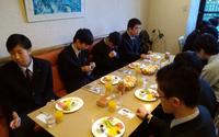 昨夜は早く寝た班、遅くまでアイドル談義に花を咲かせた班等いろいろだったようですが、とりあえず全員がパンやオムレツに手をつけました。