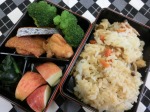 第二学年の生徒たちは、これまで培ってきた調理技術をいかし、「家庭総合」の時間に栄養バランスを考えたお弁当作りに取り組みました。