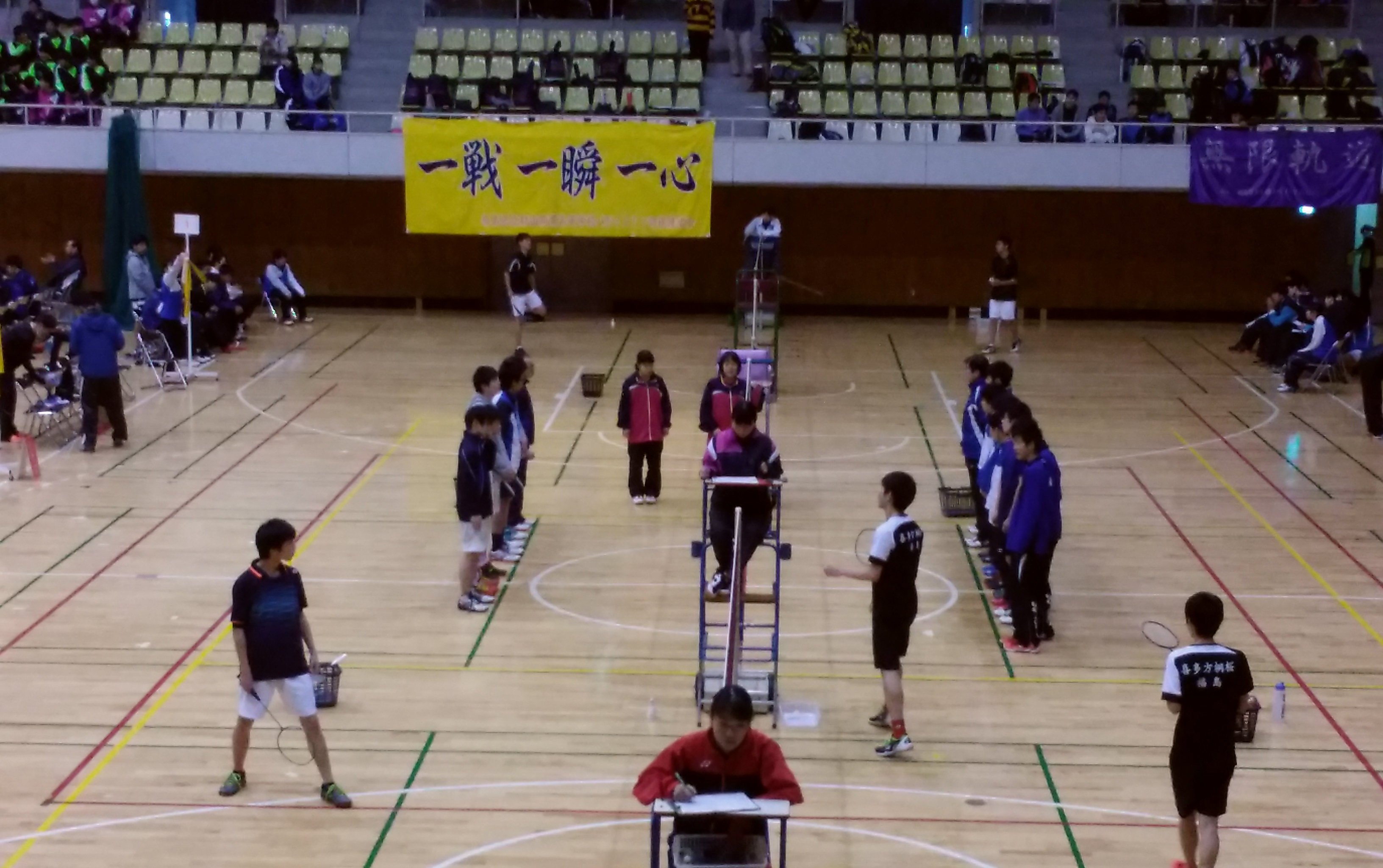 3月9日(土)~10日(日)、郡山市総合体育館において高等学校フレッシュグランプリ大会バドミントン競技が行われ、鮫川校からは男子チームが団体戦と個人戦に出場しました。