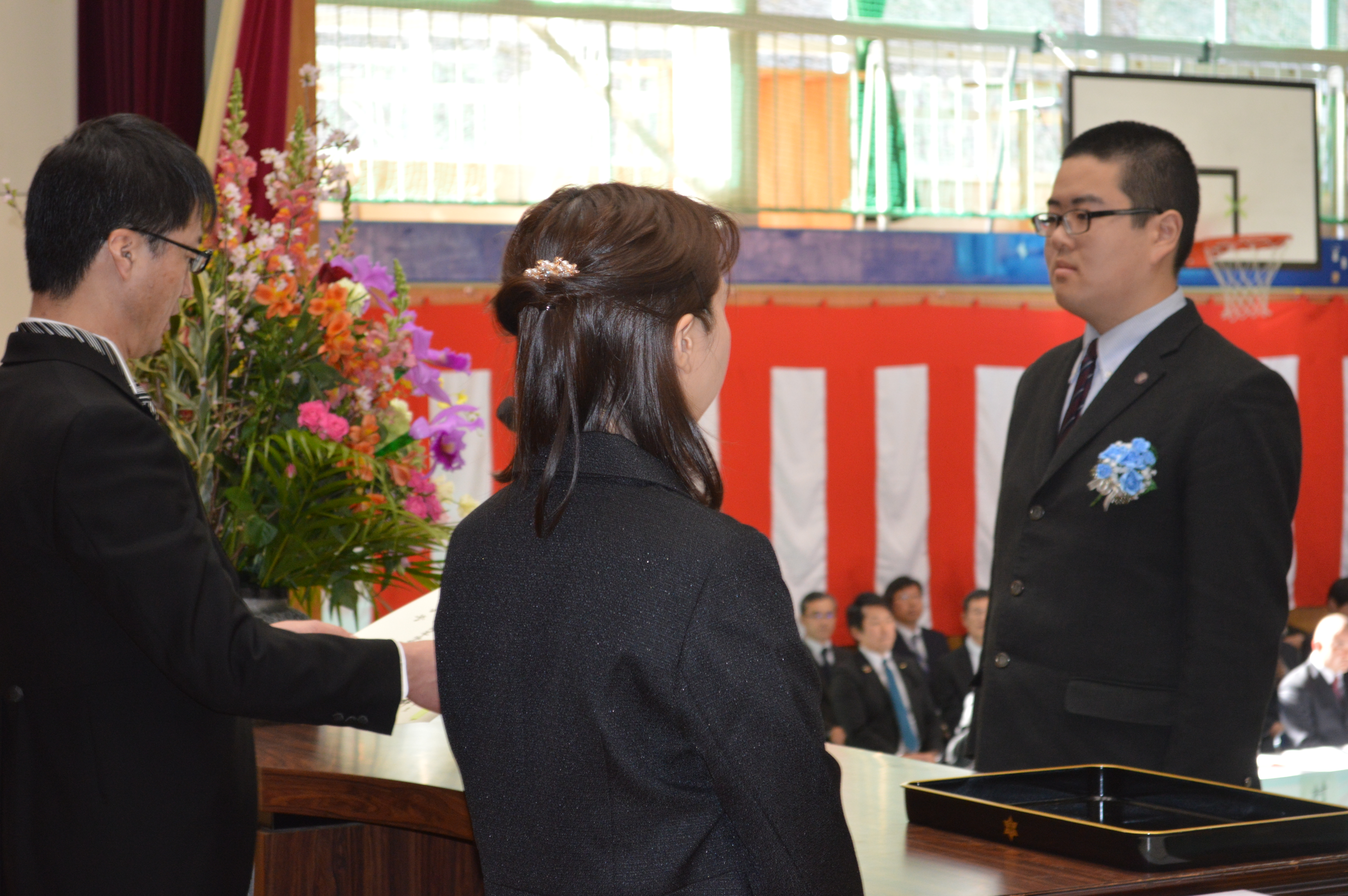 前日までの寒さも和らぎ、穏やかな日和となった3月1日の午後、平成30年度の卒業証書授与式が鮫川校の体育館で挙行され、卒業生21名一人一人に安田修久校長から卒業証書が手渡されました。