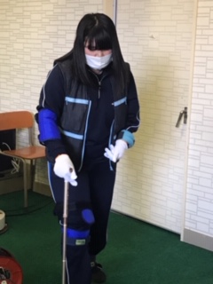 後半では、視界が悪くなるゴーグルや重りの入ったベストなどを身に着けて、高齢者の方の動きにくさ、物の見えにくさなどを疑似体験しました。