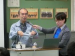 (左から。一枚目、篠宮様が放射線の測定を実演してくださいました。二、三枚目、玉出様によるカービングの実演。四枚目、県南農林事務所や林野庁の方も加わった質疑応答。活発なやりとりが行われました。)