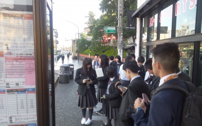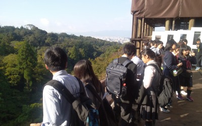 清水寺へは、班別自主研修の練習を兼ねて、全員でバスの一日乗車券を使って移動します。