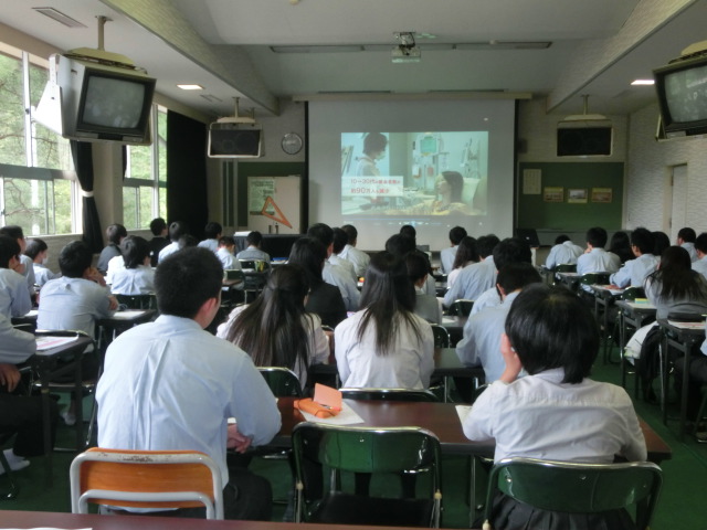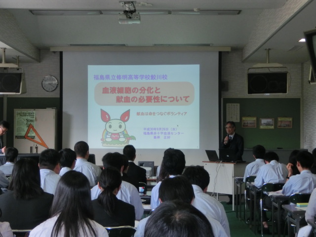 9月26日(水)、鮫川校視聴覚室において献血セミナーが開催されました。講師をお務めいただいた県赤十字血液センター所長の峯岸様からは、献血の意義や手術と輸血の現状等についてお話をいただきました。生徒たちは懸命にメモを取りながら、医療現場の写真や患者さんたちのメッセージ映像に見入っていました。