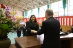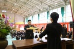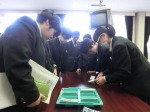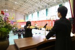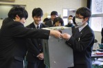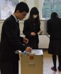 ↑(左)投票事務係生徒から開票事務係生徒へ、投票箱を届けました。