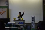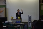 今回の模擬選挙では、最初に「福島県知事候補」の役を務める二人の大学生から選挙演説をしてもらいました。いずれの候補も自身の政策の柱を明確にするとともに、身振り手振りを交えながら生徒たちに持論を熱く語りかけてくださいました。その演説を聞いた生徒からは「専門教育を充実させるという政策は、子どもたちの多様な可能性を狭めることにつながらないか」という質問が出されるなど、この場を設定した教員も驚くほどの活発なやりとりが「候補者」と「有権者」の間で繰り広げられました。