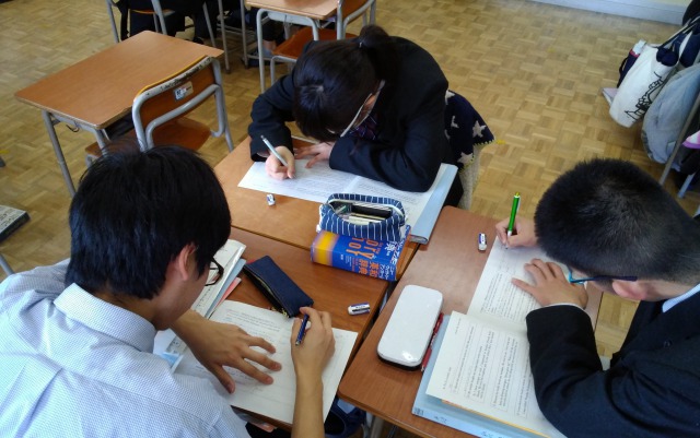英語が苦手な生徒たちも、これまでに習ったことを総動員して、担当教員の質問に答えたり、仲間と課題に取り組んだりしていました。
