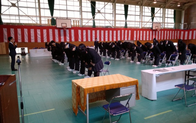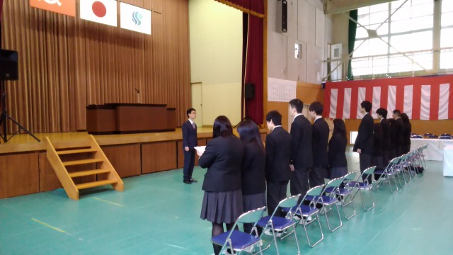 当初は礼が揃わなかったり、歌声が小さかったりと、卒業式本番に向けて不安が感じられる面がありましたが、式当日の進行を担当する生徒指導主事の指導の元、次第にその不安も払拭され、予行の後半には凛々しい姿が見られるようになりました。