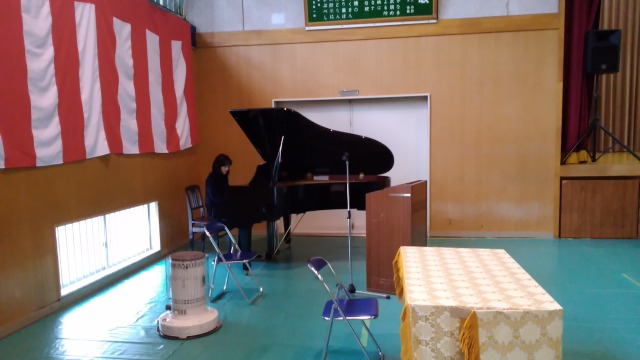 音楽の教員が本校との兼務のため不在である今日は、ピアノの伴奏を英語の教員がつとめました。生徒も教員も少ない鮫川校は、「協力」「連携」「自主」「自発」が日常です。