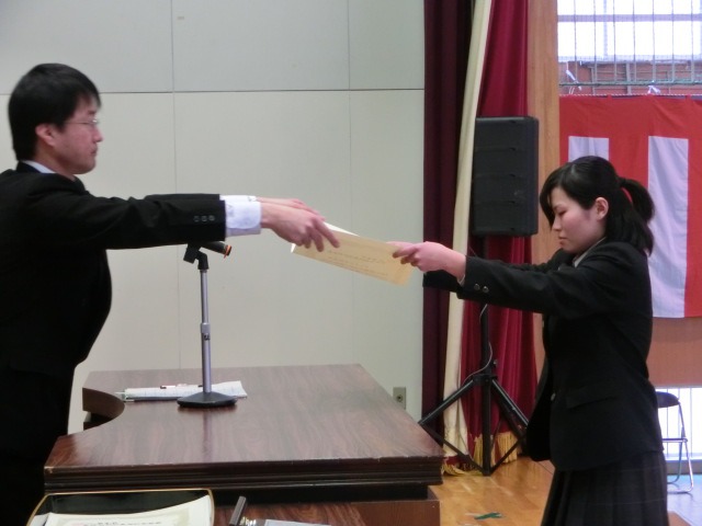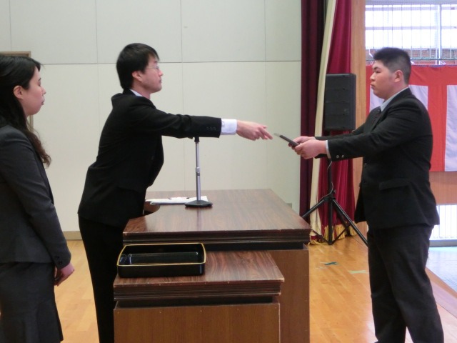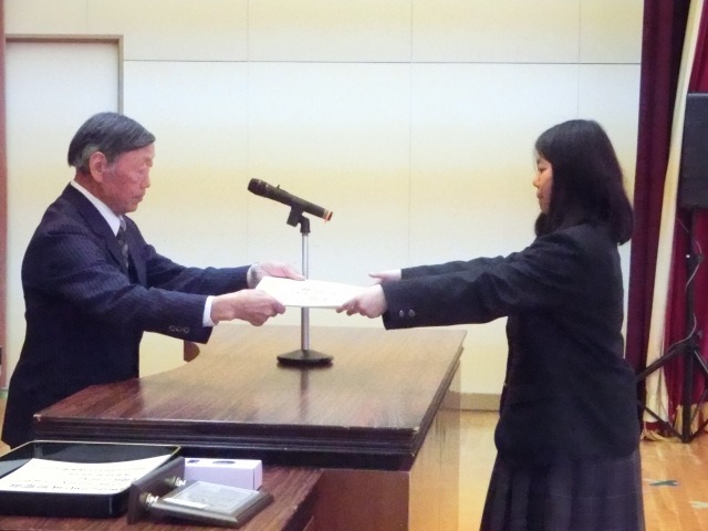 卒業式の予行を終えた午後、表彰式と同窓会入会式が執り行われました。