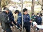 12月5日(火)、1学年の生徒が鮫川村中心部の館山公園にて「森林学習」を行いました。この催しは、県の「県立学校における森林環境学習推進事業」として行われるもので、鮫川村の自然や産業についてより深く理解・体験することを目的に実施しているものです。