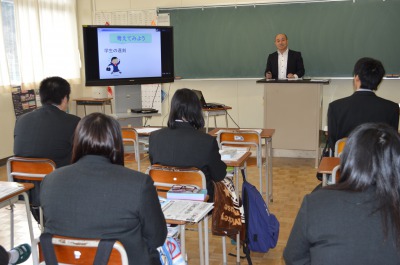11月22日(水)、社会保険労務士の牧野祐一様と福島民報社の市川純一様を講師に迎え、3年生を対象とした「高校生支援セミナー」が開催されました。