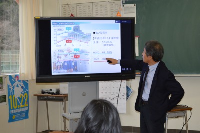牧野様からは「働くときのルール」や「社会保障制度」についてお話をいただきました。特に通勤時の怪我の扱いや各種保険の内容や仕組み等については、3年生が来春からお世話になる企業の実際の求人票を用いながら、丁寧に説明していただきました。