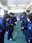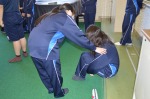 この日はまず全校生で大掃除を行い、今年の汚れをすっきりと落としました。通常の清掃時に行っている床、机、黒板の掃除はもちろん、今回は窓ふきや校舎外の側溝の落ち葉あげまで、かじかむ手に息を吹きかけながら行いました。窓は最後に新聞紙で拭きあげ、つやを出すなどの工夫を皆で行いました。