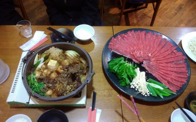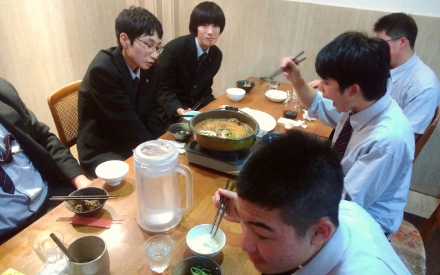 一日中歩き回った後の夕食はすき焼き。男子は、女子が食べきれなかった分もきれいにいただいたので、大満足のひとときとなりました。