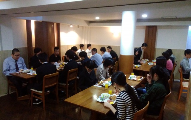 修学旅行3日目の朝食は、パンがメインの洋食でした。男子の中には、物足りなさを感じた生徒もいたようですが、女子はお腹がいっぱいになったようです。少しずつ疲れも出てきたのか、とても静かな朝食時間となりました。