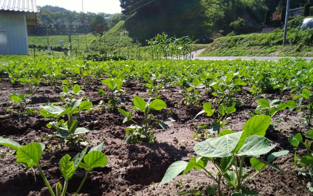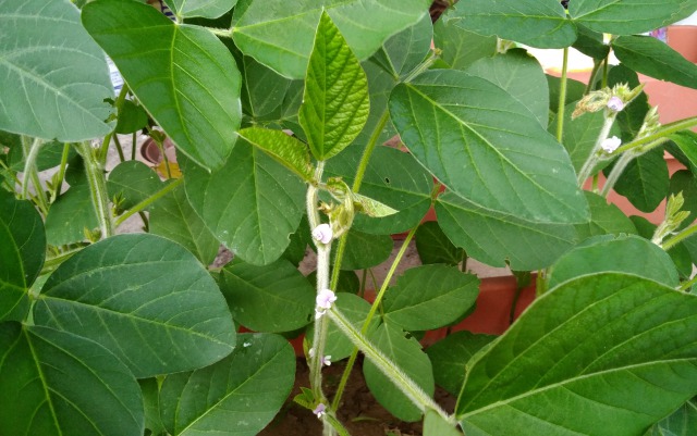 地域の方からお借りしている畑の大豆はまだですが、自転車置き場のプランターで育てている大豆は小さな小さな花をつけました。畑の大豆の花の「見ごろ」が待たれます。