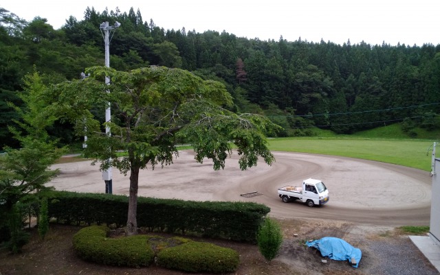 鮫川校のグラウンドは鮫川村の土地であるため、定期的に村の担当の方が芝刈りをして下さいます。また、軟式野球部員の保護者の方が、ほぼ毎日のように軽トラックにレーキをつけて、練習後の内野の荒れを整えて下さっています。