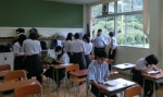 始業式に続いては、国数英理社の課題テスト。夏休み中の各教科の課題をもとにしたテストです。生徒たちは定期考査さながらに、真剣にテストに取り組んでいました。